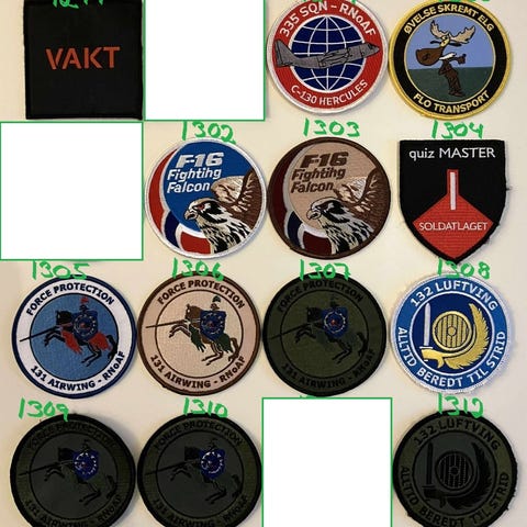 17-d) 4 stk. broderte Millitæremerker som vist på bilde til kr 80- samlet