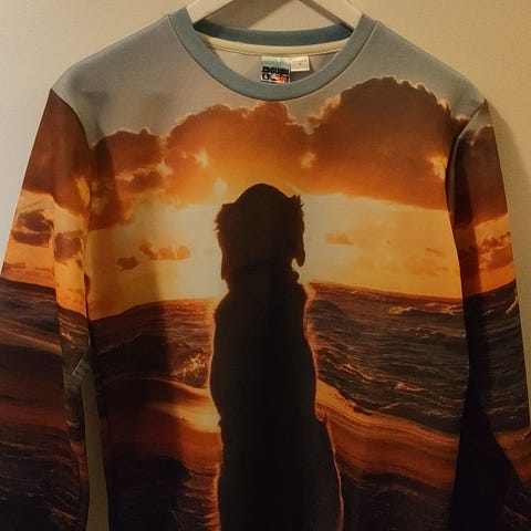 Lett tynn genser med bilde av en husky