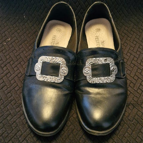 Bjørgvin bunadssko. Med rødt.