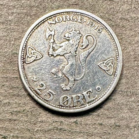 Norge 50 øre 1918 .600 sølv NY PRIS