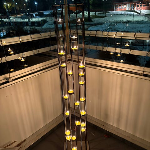 Telysbrett med pyntesteiner med plass til 3 telys