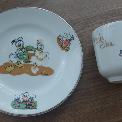 Vintage Stavanger Flint Disney tallerken i vinrød/krem farge.. Ingen skader.
