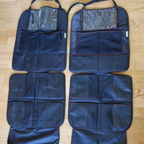 BeSafe setebeskytter for bil. Festes rundt nakkestøtten og har hull for å feste isofix/bilbelte.