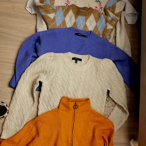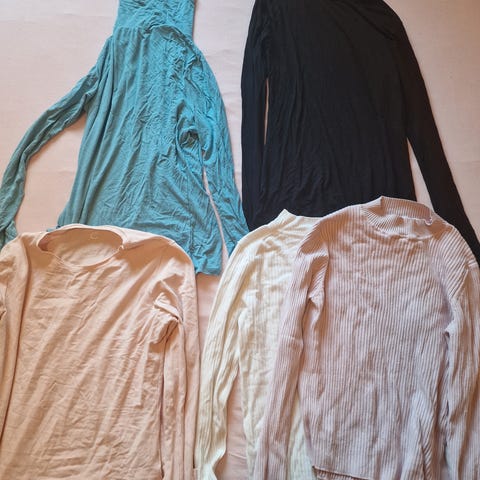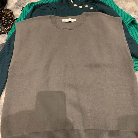 Den rosa, brune og fargerike genseren/hettegenser er pent brukt og i god stabd! De grå er litt nuppete.