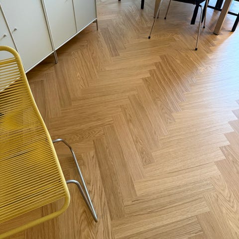 Vi er kjempefornøyd med gulvet! Det er en varm farge uten at det blir gult.