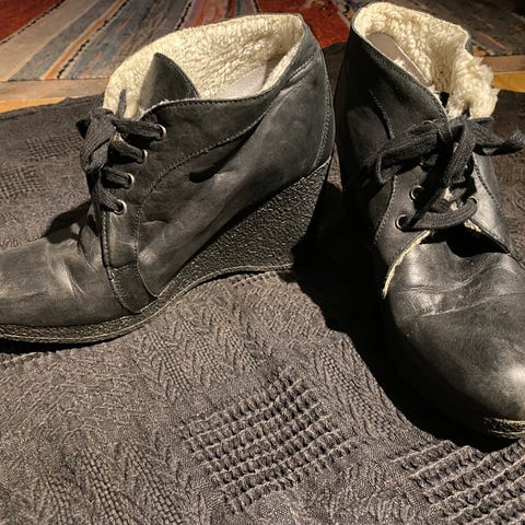 Pent brukte sko, trenger litt skinnpleie på tuppen av skoen.
