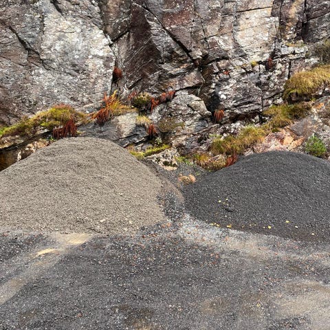 Vi selger også overstørrelsen av fresemassen, som egner seg til oppfylling/underlag for et finere lag på toppen. Størrelse ca 12 til 90 mm. Det selges for 100 kr/tonnet.
