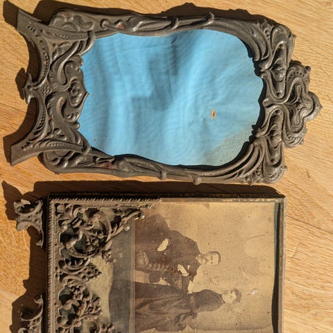 Antikk ramme med glass og fotografi