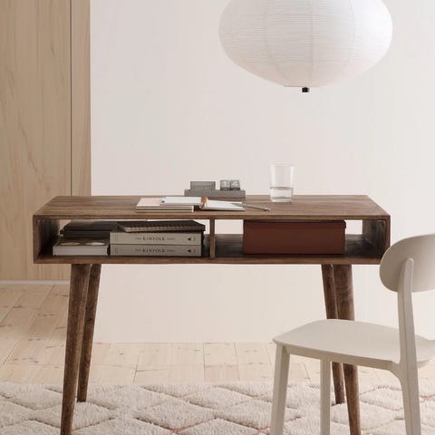 Kul vintage skolepult med oppbevaringsplass under lokket.