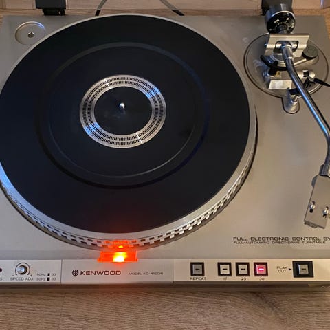 Selger en Yamaha P-350 platespiller. Den har remdrift og autoretur. Lokket er helt men har noen riper, men de er fullt mulig å polere bort. Den har ikke stift, men det er en grei sak å skaffe.