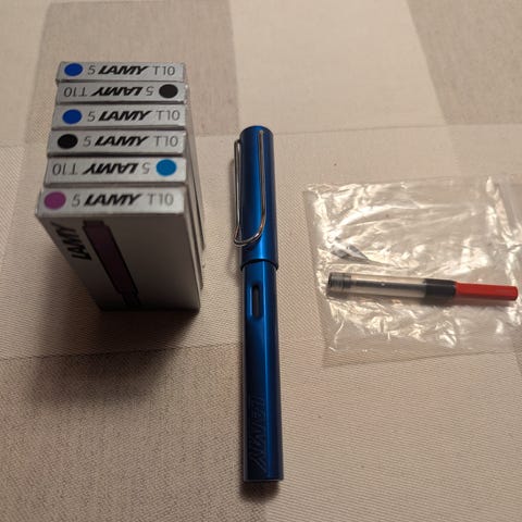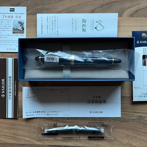 Splitt (nib): M (fine), størrelse 10, 14k gull. Dekorert med Hira Maki-e. Bruker Namiki cartridge/converter-system.