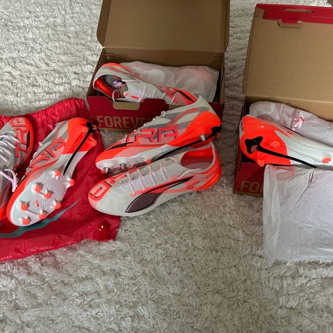 En lyskestrekk og føttene var klar for større fotballsko når den skaden var reparert 😆. Er 42 din størrelse så har du et par billige sko her.