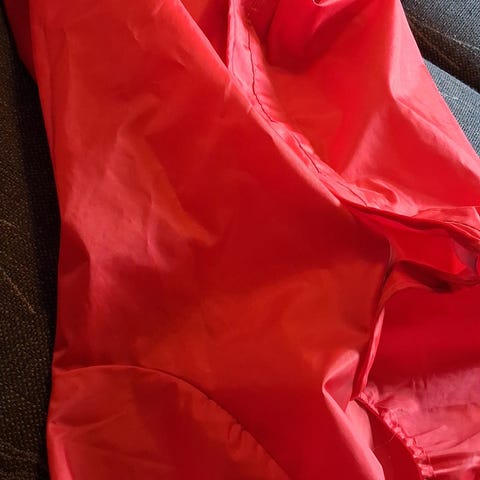Regndress til liten hund selges. Rosa med sølv på innsiden. Ikke foret.