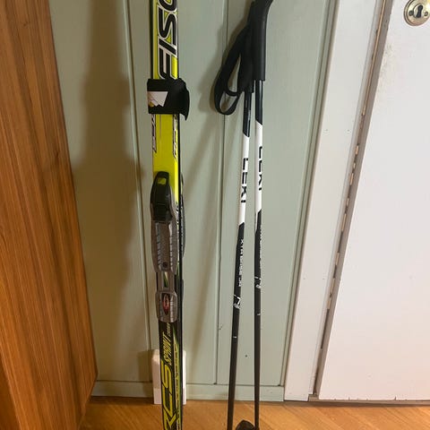 Madshus 140 cm, Fischer 120cm, staver 85cm og 95cm