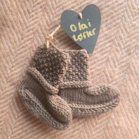 Strikker olai tøfler på bestiling.🤍❤️🤍