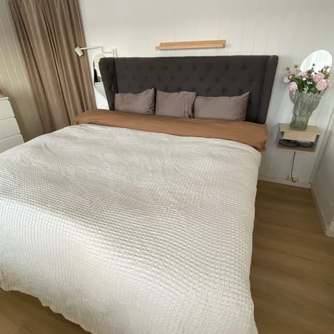 Jensen opdal jubileum kontinental 150x200 seng med gavl frittstående selges. Farge lys grå, med sorte ben. Sengen er fint brukt og har ingen bruksmerker. 18 cm ben.