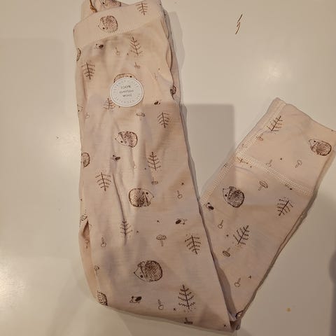 Printede leggings i myk tencel og viskosekvalitet med strikk i midjen. Trykket er dixie med harlekinruter, små sløyfer og hjerter