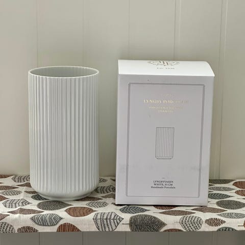 2 telysholdere i matt porselen svart Lyngby by hilfing. Og en klar vase i glass 10cm fra Lyngby porselensfabrikk.