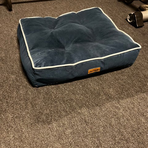 Pent og lite brukt hundeseng med 3 fleecetepper og et hundeteppe med vanntett underside.