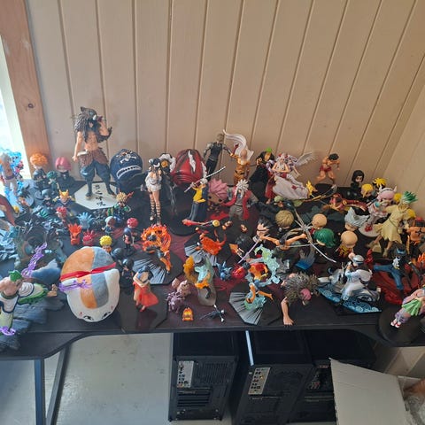 Figurer fra forskjellige serier serier som: "One piece", "Konosuba", "Reincarnated as a slime" "Dragon ball", "One Punch Man", "My Hero Academica", "Overlord)", "Re:zero", "Black Clover", "Fullmetal Alchemist", "RWBY"