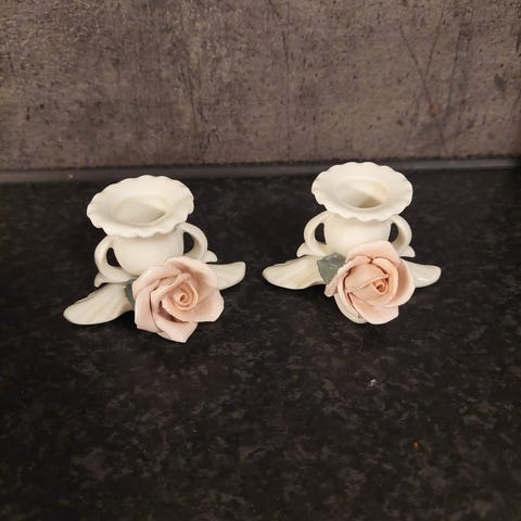 Utrolig vakker vintage lysestake i porselen.