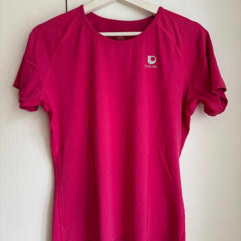 Treningstopp med glidelåslukking og halvhøy hals. Flott rosafarge som er noe klarere enn det som kommer fram på bildene.