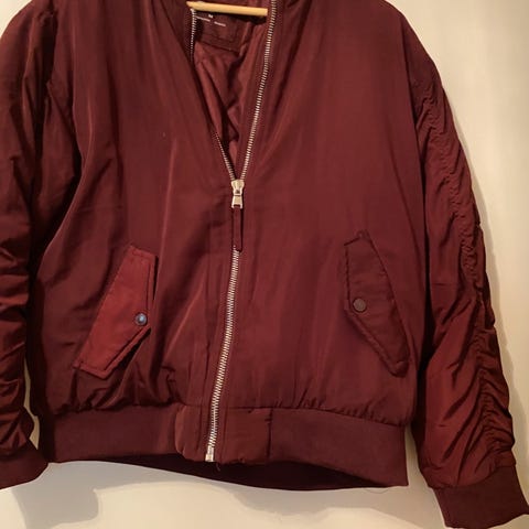 Superfin burgunder bomberjakke fra Creative Collective! Den er foret og passer derfor perfekt til vår og høst, når det er litt kjølig ute.