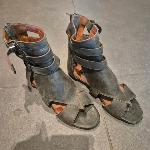 Kule lær sandaler fra Acne Studios. Str 38, passer 39 også :) med gule detailer