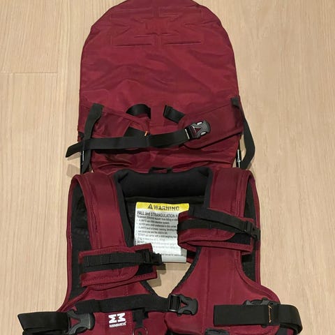 Mangler skulderreim, men det burde det være mulig å få tak i (Vårt barn på ett sitter trygt med magebeltet og fotfeste).