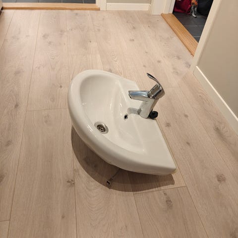 Ny porselensvask bredde 35cm, dybde 35cm, høyde 13cm. Veggmontering