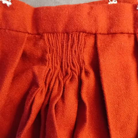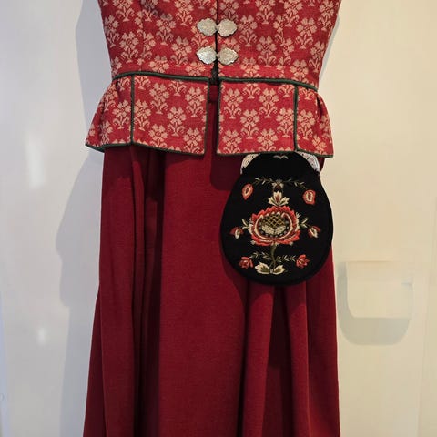 Stakk til rød trønderbunad selges. Størrelsen er ca M / 38-40 og den er 91 cm lang! Stakken er sydd hos husfliden på Steinkjer.