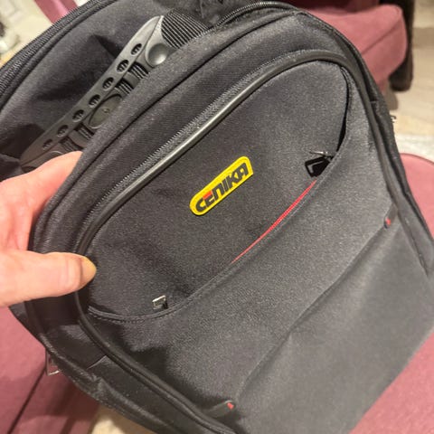 Brun skinnveske - litt mykere i skinnet. Ti lommer inni og en på utsiden. Trenger noen sting, se bilde. 20*29 cm. Solgt.