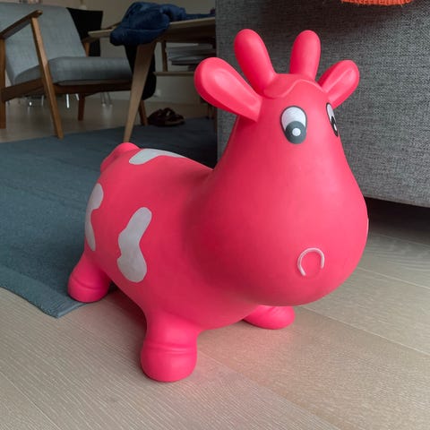 Søte,oppblåsbar ku i tykk gummi. utvikler kjernemuskulatur og koordinasjonsegenskapene, samtidig som de har det hoppende gøy.