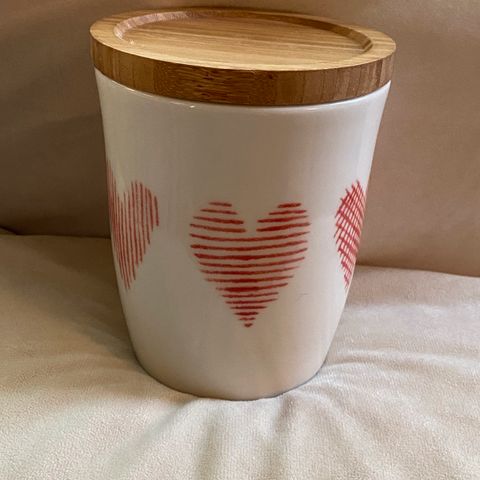 Søt flaskekork med beige trehjerte fra Pentik. Finsk design. Tynneste delen av korken nederst er ca 1,5cm. Lengde på hele dingsen er ca 10cm Se bildene for mål.