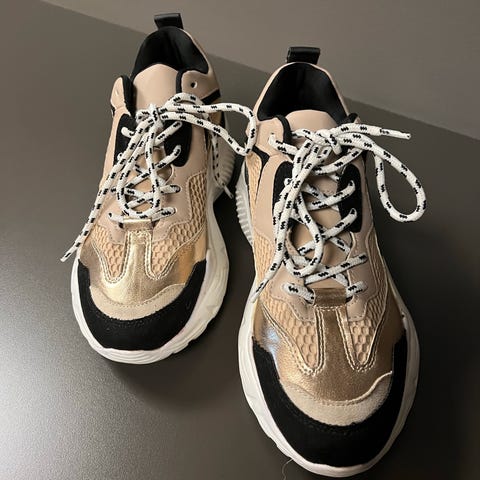 Offwhite og brune sneakers med gulldetaljer fra Steve Madden. Ny pris: 1399,- Fin julegave!