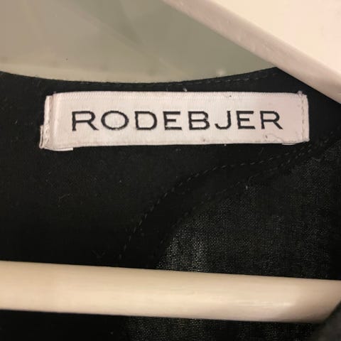 Elegant ermeløs kjole fra Rodebjer. Myk stoffkvalitet. Se bilder. Brukes både til fest og hverdag. Ny, ubrukt, med lappen på. Ca 103 cm lang, ca 43 cm over brystet, liggende flatt. Litt stretch i stoffet. S til liten M.