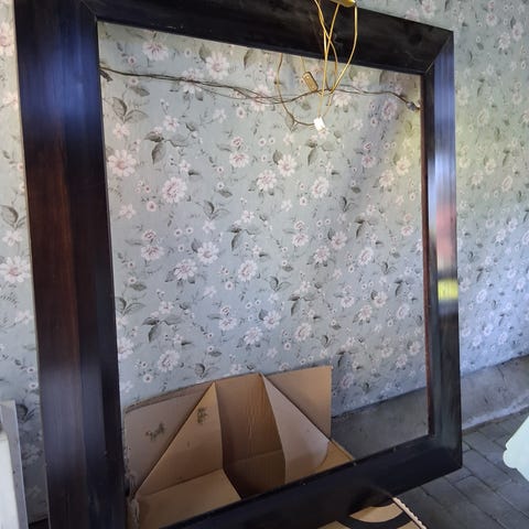 Massiv treramme i sort og gull. Laget av rammeverksted. Ytre mål 90 * 80, indre mål 50 * 60.