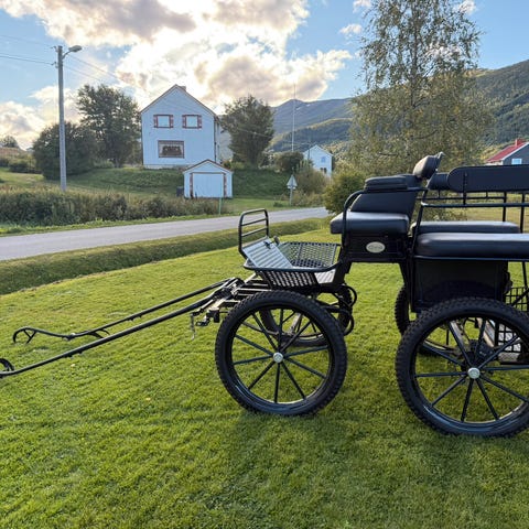 Vogn for to hester, men også drag til enbet. Vekt ca 300 kg.
