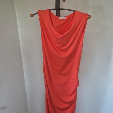 Helt ny Floyd kjole m skjerf til. Justerbare stropper. Str 10 eller M Underskjørt som sitter fast. Nydelig med perler påsydd.Strikk-rygg gjør passformen grei og justerbar.Dyr kjole i innkjøp.