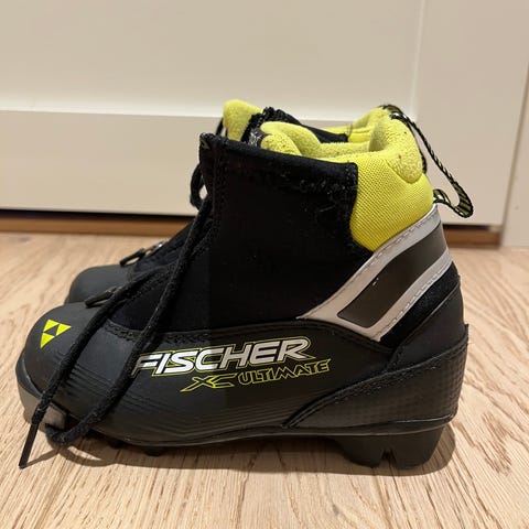 Skisko i størrelse 32. Brukt 3 ganger i 10 minutter