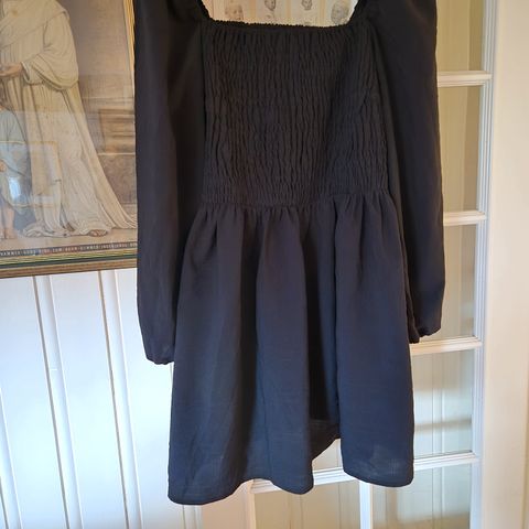 Meget pent brukt kjole i svart med glittertråder. Skråskjæring i ryggen. Perfekt til festlige anledninger!