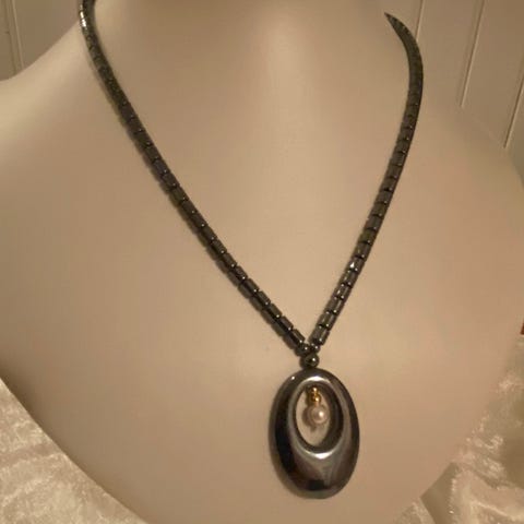 Vintage smykkesett i hematitt [blodstein] og sølv