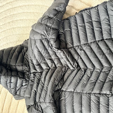 Har et lite hull på v. Arm og mangler litt dun der. Noen svake flekker på ryggen som nesten ikke vises. Se bilder. Liten i str.