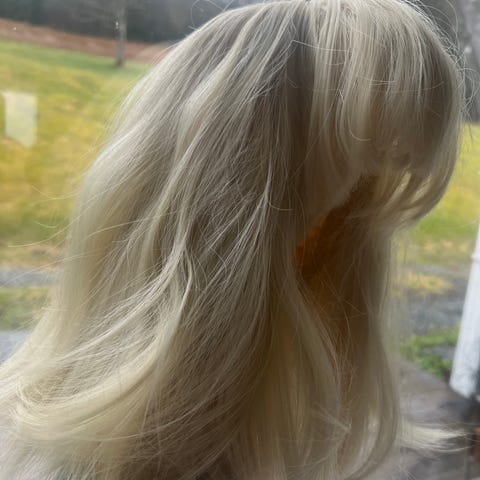 Eksklusiv syntetisk parykk med en del tilbehør selges