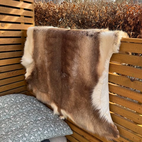 1 pent brukt saueskinn av villsau,som nytt. 900,-
