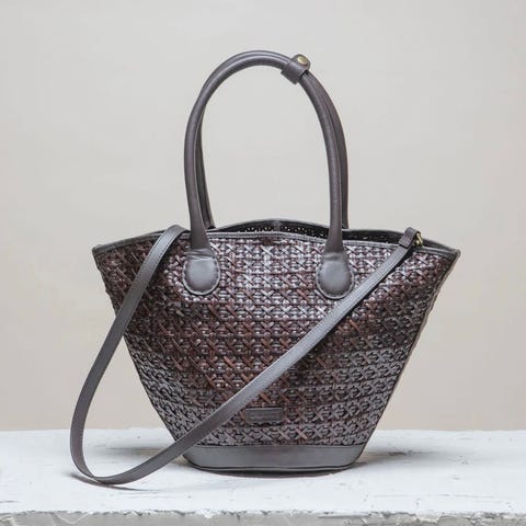 Selger en superfin, stor veske fra CALAJADE av ekte skinn, modell: SANDHI L Auburn Twill Tote bag.