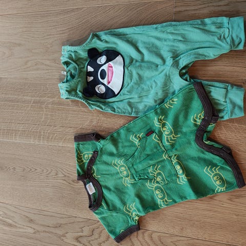 En morgenkåpe med monster/dinosaurmønster med tenner på hetta i str 98/104