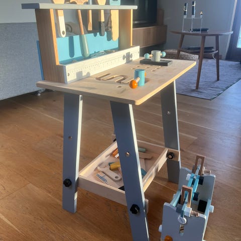 Lekeskap - Verkstedbenk i tre m/verktøy.