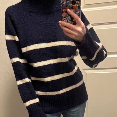 Str:191 * 27 cm. Strikket med en tråd sokkegarn i 75% merino & 25% nylon fra Garnbutikken Fortuna farge Louise ort & 1 tråd kid silk fra Drops. (75% mohair & 25% silke)