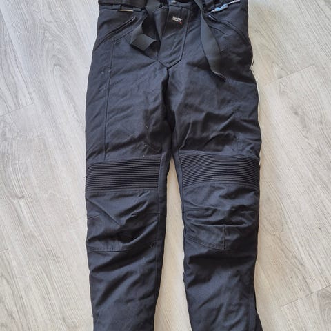 2-lags tekstil, ekstra vannavstøtende Teflon-behandling, forsterkninger på hofter og knær, Outlast temperaturregulerende, utakbart fôr med Thinsulate, forsterket med skinn i baken, avtakbare sele, ventilasjoner, reflekser, justerbar benvidde, kan kobles sammen med jakke.
